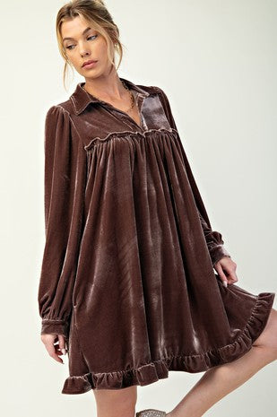 Easel Mocha Plus Size Velvet Ruffle Bottom Dress