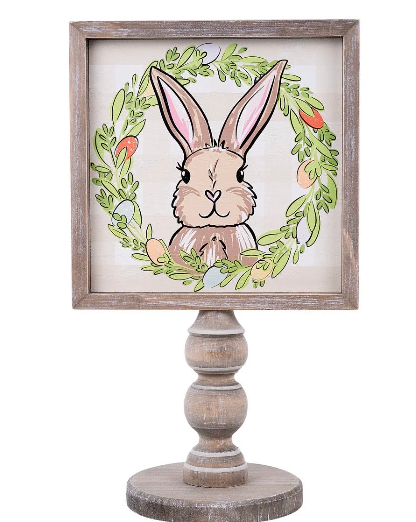 Add a festive touch to your Easter decor with the 'Egg Wreath Bunny Stand.' Perfect for springtime celebrations, this charming stand features a playful bunny surrounded by colorful eggs. Ideal for displaying on tables, entryways, or as part of your Easter centerpiece, it brings joy and whimsy to any space.