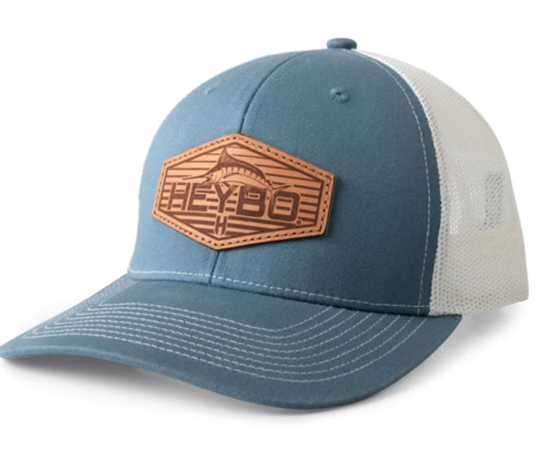 Heybo Leather Marlin Patch Mesh back Trucker Hat Slate/White Hey7510