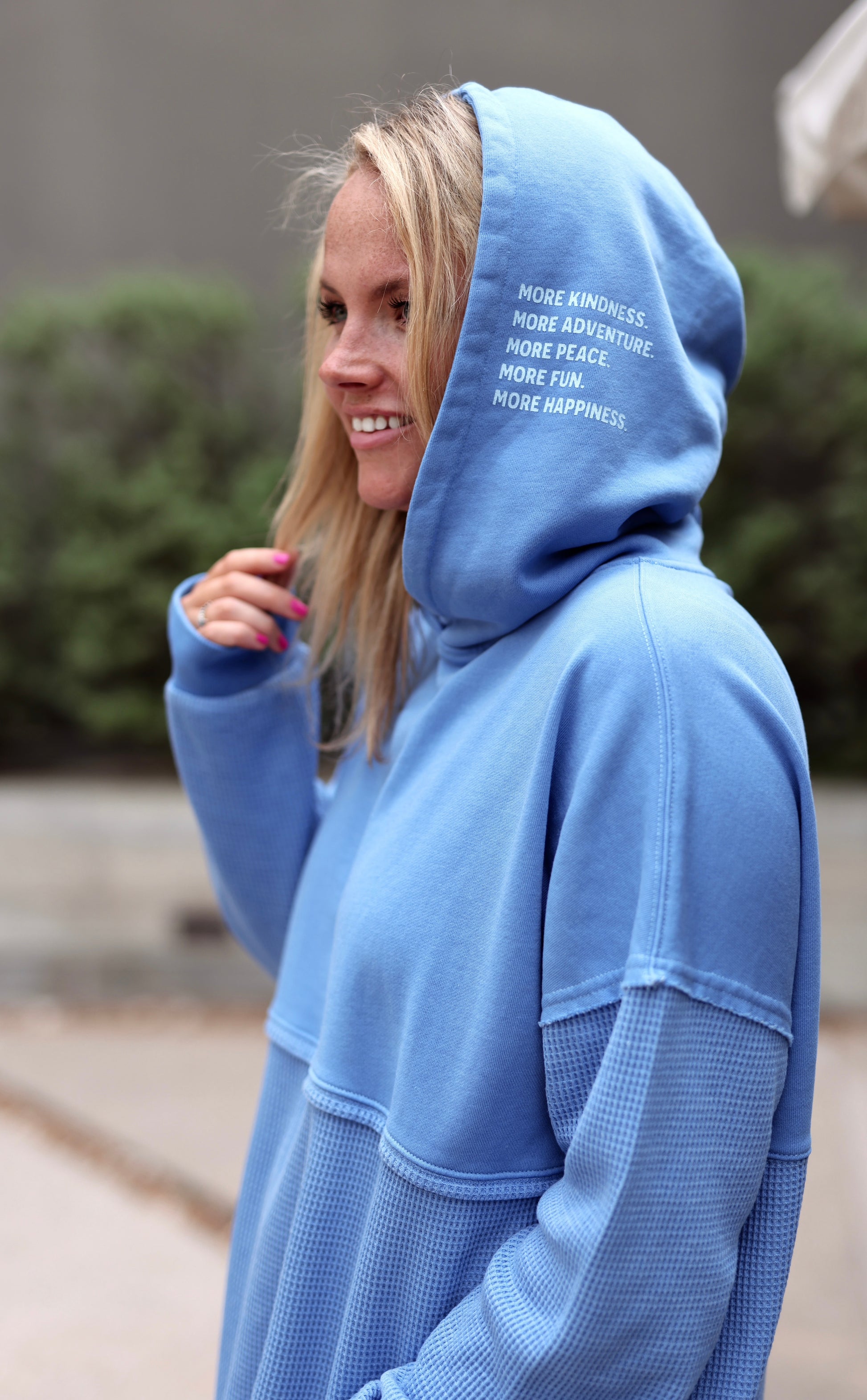 Jadelynn Brooke Hidden Message Oversized Waffle Hoodie More Kindness Cobalt Blue
