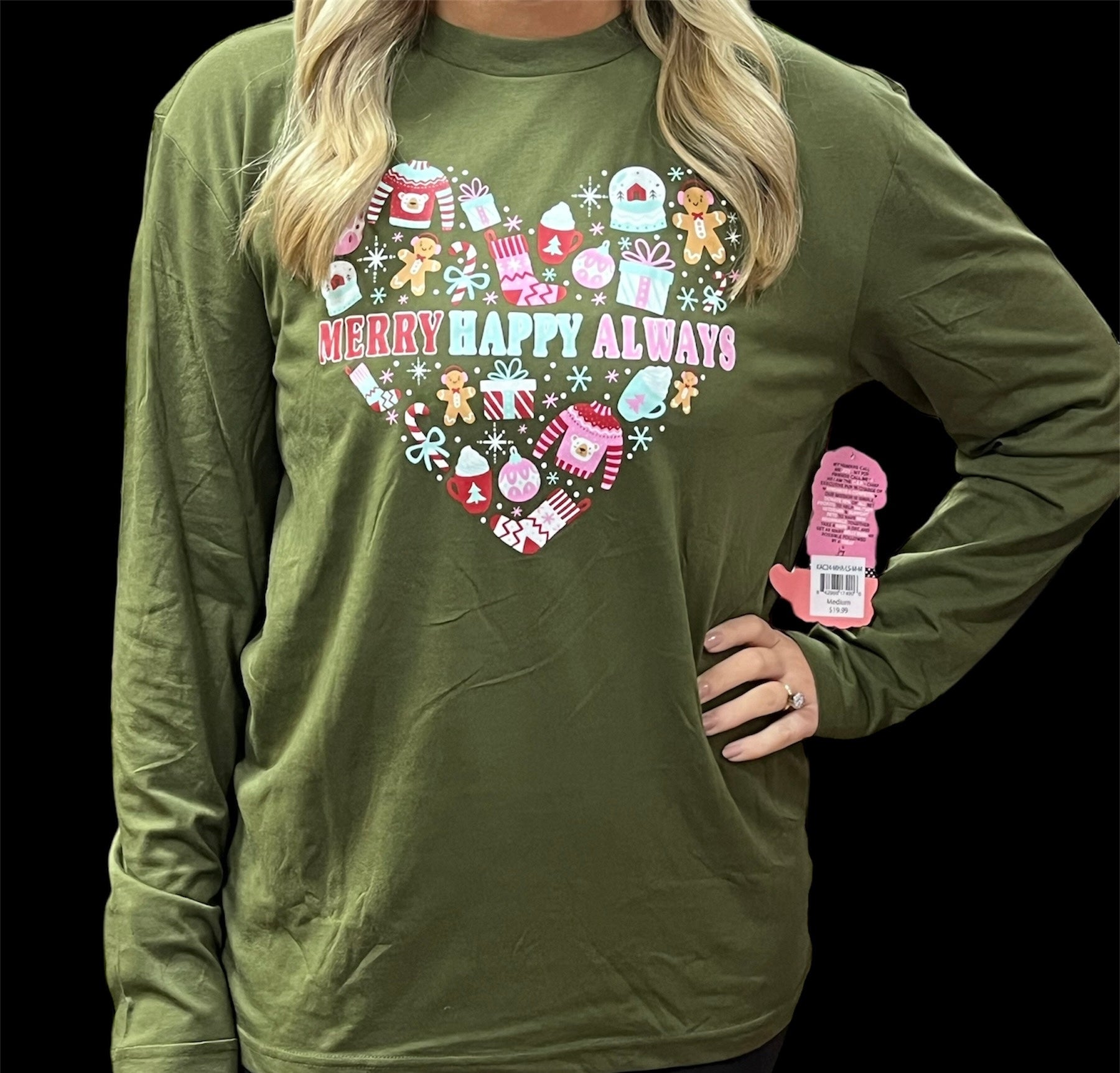 Jadelynn Brooke Merry Happy Always - LS Crew Moss