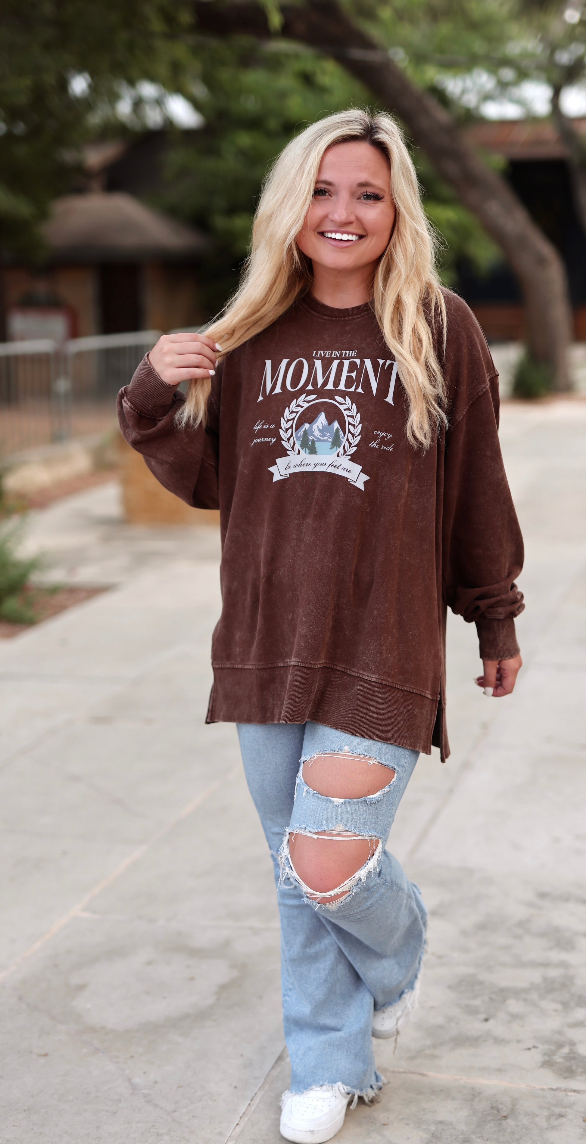 Jadelynn Brooke Mineral Wash Pullover Live In The Moment Espresso