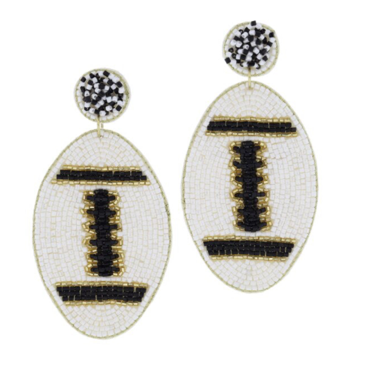 Jane Marie Black And Ivory Beaded Post With Black Gold Football Earrings