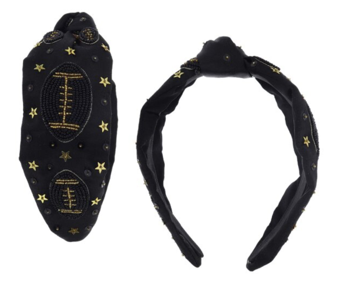 Jane Marie Gold Star And Black Sequins With Black And Gold Beaded Football on Knotted Black Headband