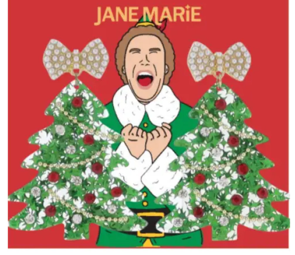 Jane Marie Green, Red, Pearl, Clear Acrylic Christmas Tree With Pearl Bow Earrings