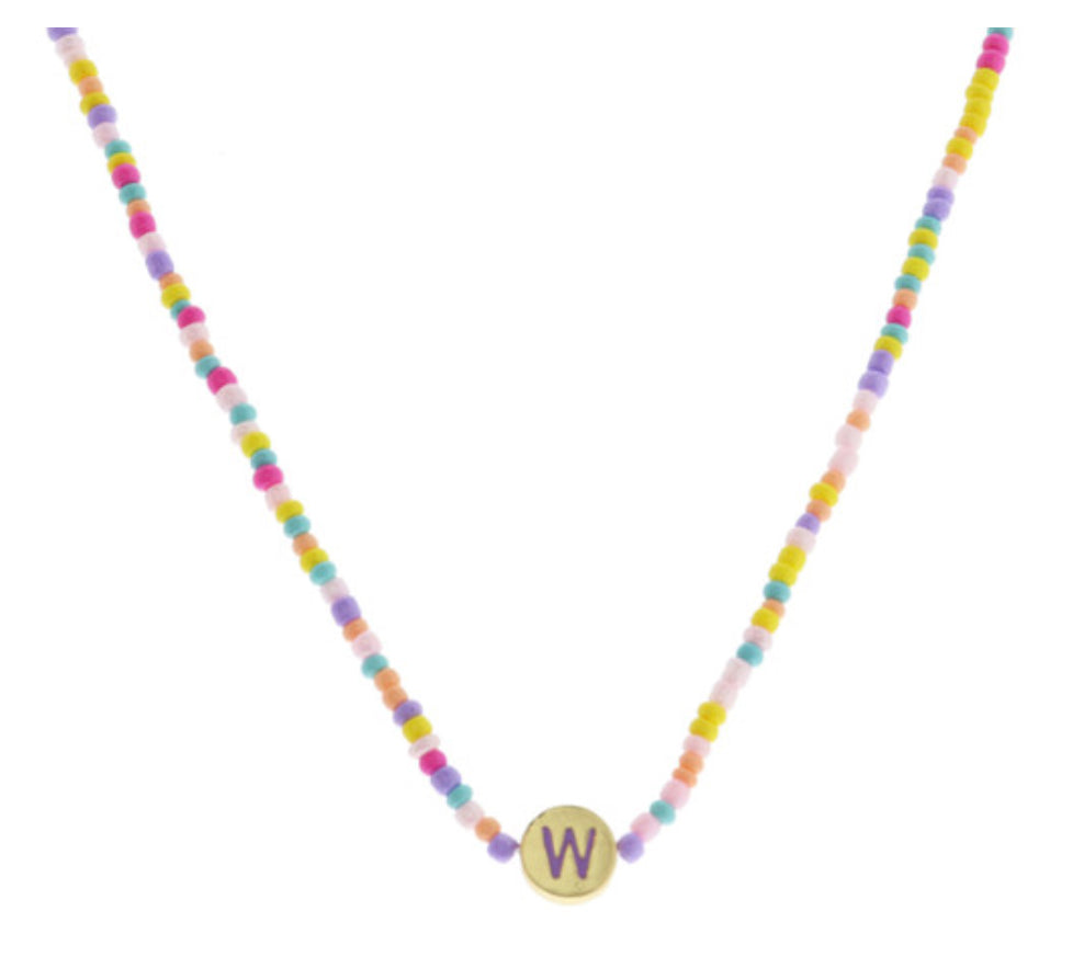 Jane Marie Kids Lavender Multi Bead Initial On Gold Disc Necklace