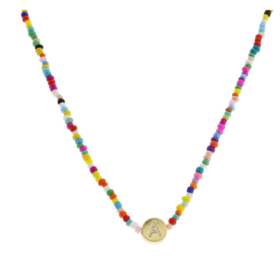 Jane Marie Kids Rainbow Multi Seed Bead Initial Gold Disc Necklace