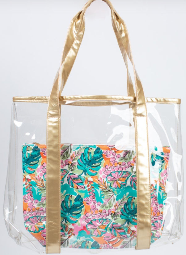 Jane Marie Tropical Dream Clear Tote With Insert, Patent leather