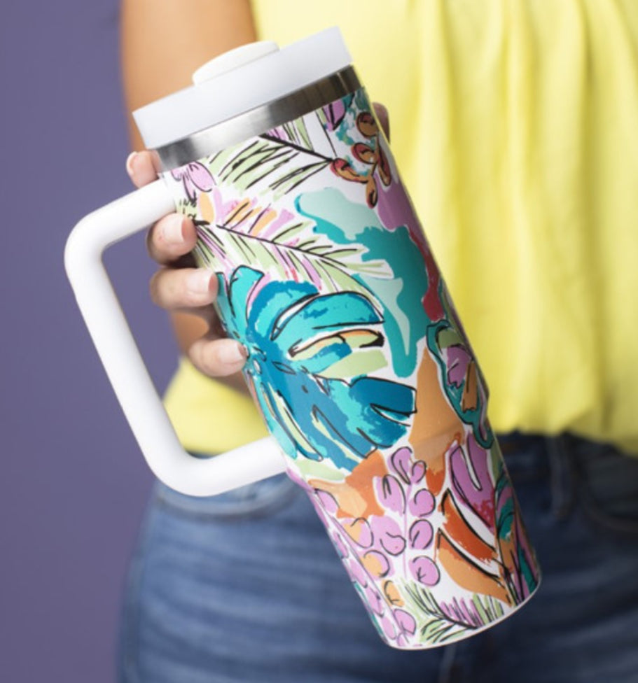 Jane Marie Tropical Paradise 30 oz Tumbler With Straw And Handle