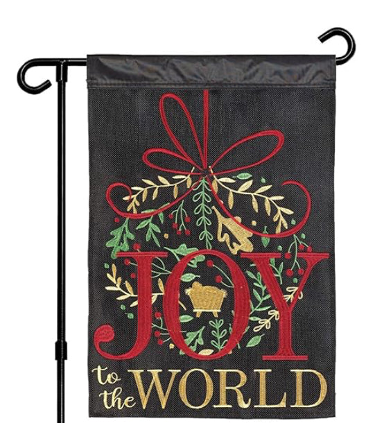 Magnolia Garden Joy To The World Burlap Garden Flag