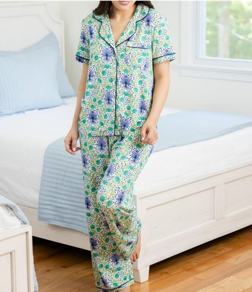 Mary Square Short Sleeve Top & Drawstring Pants Luxe Be A lady Blue Charlotte
