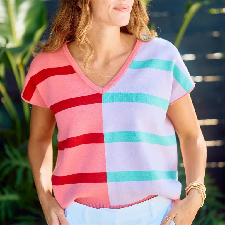 Mary Square Sweater Hannah Coral Lilac Stripe