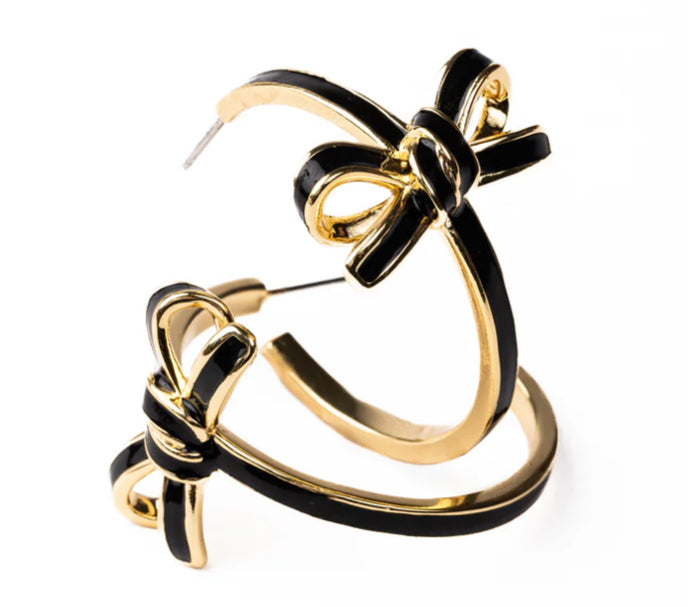 Michelle McDowell Luxe Bow Hoops Earrings Black 59195