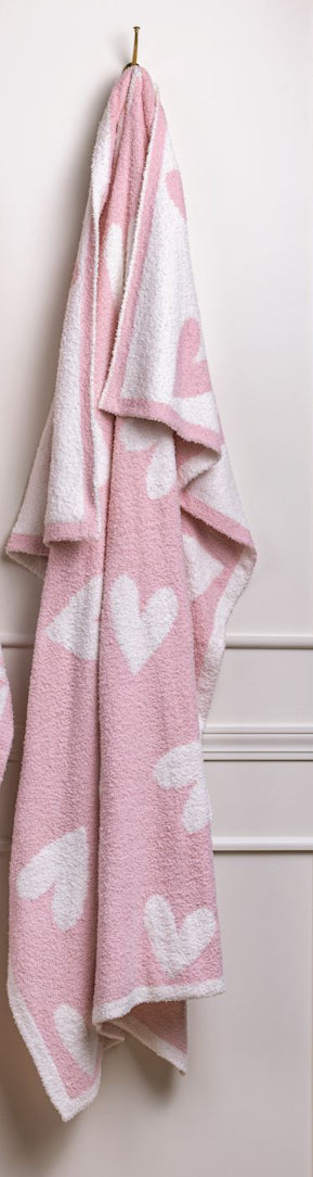 Mudpie Valentines Chenille Blanket Pink W/White Hearts